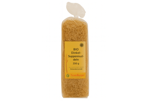Die Bio Dinkel Suppennudeln hell haben eine aromatisch-nussige Note und eine hohe Qualität. Die Dinkel Suppennudeln hell sind gut als Vor- oder Hauptspeise. Die Kochzeit der Bio Dinkel Suppennudeln hell beträgt ca. 3 Minuten.