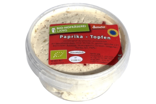 Unser Bio Topfenaufstrich Paprika ist ein cremiger Aufstrich aus Bio-Topfen und Paprikastücken. Dieser Aufstrich ist geeignet für ein herzhaftes Frühstück oder als Dip für Gemüse und Brot.