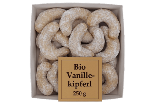 Zart, duftend und traditionell – die Bio Vanillekipferl von der Biobäckerin Renate Schrenk sind ein liebevoll gebackenes Stück österreichischer Mehlspeisenkultur. Hergestellt im Waldviertel aus besten biologischen Zutaten, vereinen sie feines Weizenmehl, Butter, frische Eier und aromatische Walnüsse zu einem mürben Genuss, der auf der Zunge zergeht. Abgerundet mit Vanillezucker entfalten sie ihr unverwechselbares Aroma – ganz ohne künstliche Zusätze.